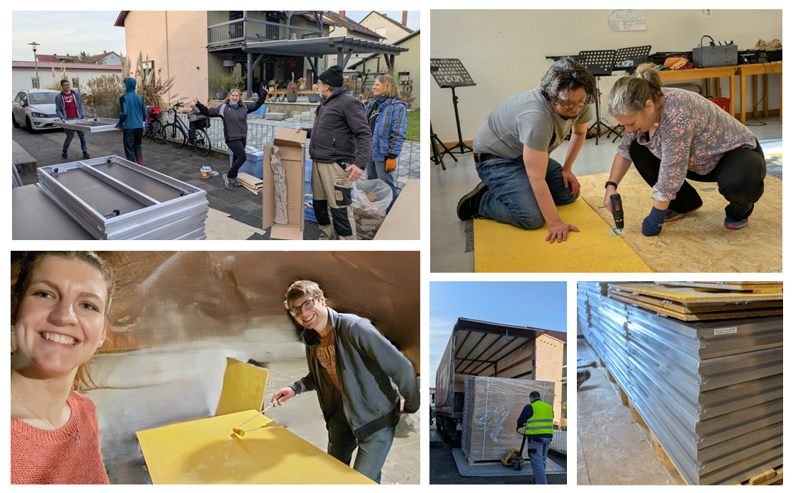 Es geht immer weiter. Die Arbeit hört nicht auf. Endlich sind unsere eigenen Bühnenelemente angekommen und wollen auf dem Dachboden eingelagert werden. Auch die Bühnen-Rückwand möchte mehr, mehr herzeigen und bekommt Zuwachs.
